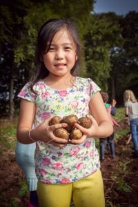 Harvesting potatoes, which are then roasted on a fire for lunch.