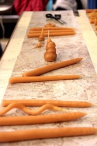 Beeswax candle dipping as part of the school day and at Christmas Market.