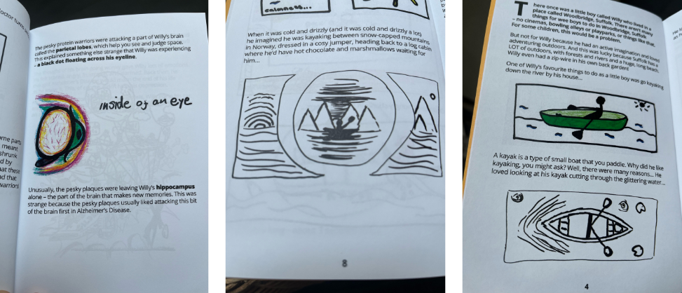 “My Wonky Brain” is the first children’s novel about dementia, written and illustrated by an intergenerational group of 10+ people, aged between 12 & 70, including Class 7 pupil, Gracie Irvine. It is inspired by the dementia journey of Willy Gilder (illustrated on the front cover).