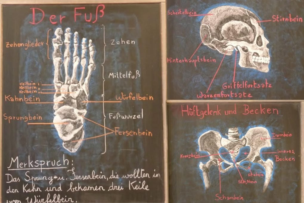Alongside the continuation of the unique Waldorf Main Lesson programme, such as Anatomy in Class 8 / Klasse 8, translated, the above reads: the middle school years culminate in the 8th grade with three special events: the Class develops a major play (Romeo & Juliet), each pupil submits an individual “year’s work” (Class 8 Projects) and presents it to a large audience, and finally, the Class goes on a longer class trip (International Exchange), which often also marks the end of their time with the Class Teacher. This is true of the Waldorf school in Berlin, whoe Class 8 pupils will be joining our school community over May and June, to the 1,200 Waldorf schools all round the world, including our own in Edinburgh.