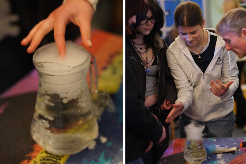 These experiments complement the wider Class 9 curriculum, which is guided by the overarching theme of ‘contrasts’: rough and smooth; ice cold and room temperature, solid and liquid; form and chaos – and of course, creation and destruction, leading ultimately to equilibrium.