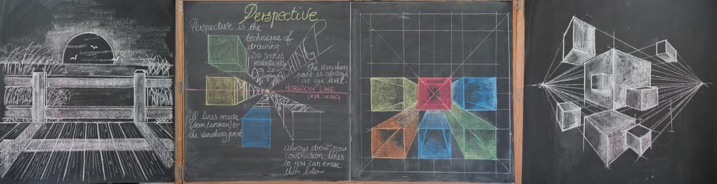 Today’s chalkboard in Class 7, ‘Perspective Drawing’ Main Lesson