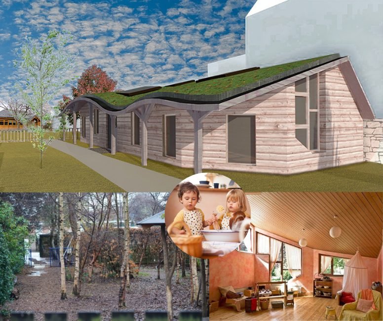 We were granted planning permission for a Seedlings building design with large canted windows, a curved living roof and natural materials sympathetic to the nature around it and to maximise daylight, typical of the Steiner spirit and will become part of the teaching process.