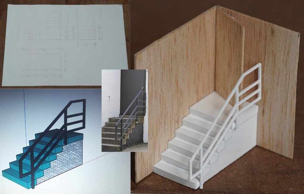 Once the class had grasped its laws, they were challenged to design several little projects for the school grounds in small groups. One group took a scaled sketch of the School Hall steps and transferred the information to CAD, going on to make a resin model in proportion.