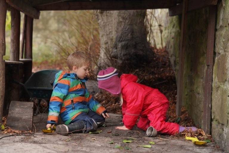 Above: Kindergarteners building a den today.