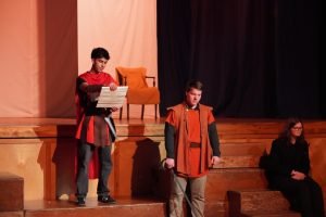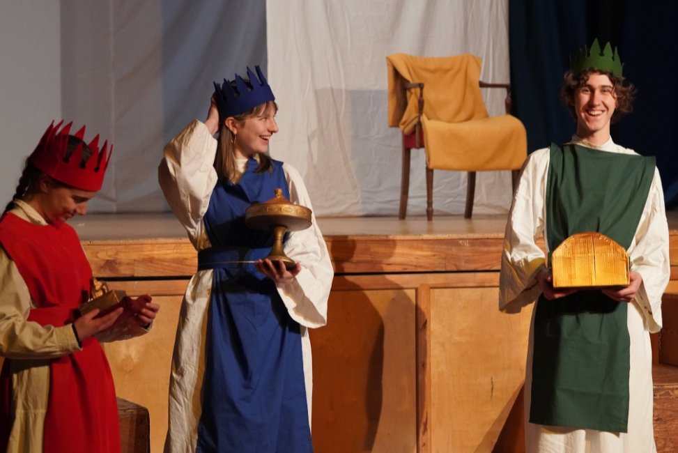 For many years Class 12 pupils undertake two drama productions throughout their final academic year at Edinburgh Steiner School, intertwined with their exam diet. Whilst they will round off their education in the school that for some has spanned twelve years of Lower and Upper School and perhaps Kindergarten too, with a Class 12 Play,  the first theatrical offering is the Three Kings Play, learning their lines, creating a poster, designing the set and costumes during Main Lesson time, with extra rehearsals.