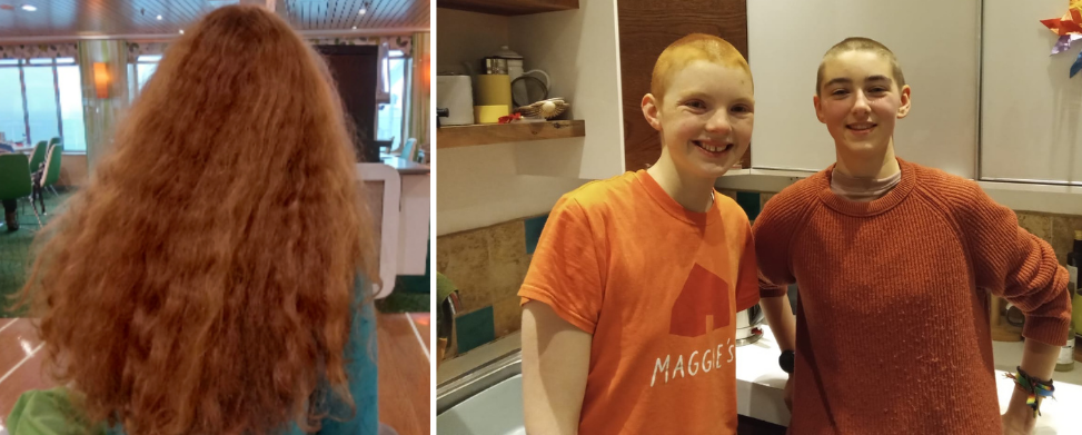Upper School pupil, Heidi Dunwoody (left), raises £3,525 for Macmillan Cancer Support with her Brave The Shave. Beth (right), shaved her hair in solidarity to support her classmate.